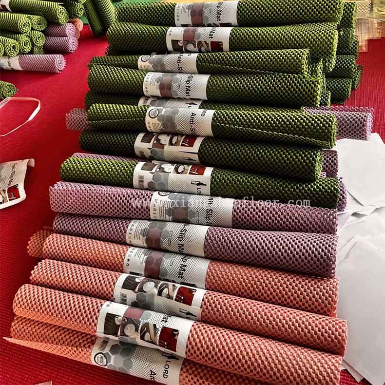 Non-skid grip shelf drawer cabinet liner is widely used in our daily life because its anti slip, shockproof, heat resistance and sound proof features. When exercising at home, the Pvc Yoga Mats are wonderful for preventing injuries to your joints such as wrist, knee, ankle and your spine, PVC Anti-slip carpet underlay and tool mat. And these pvc mat can easily cut into any size and sharp to become drawer liner, Grip liner and any other anti slip mats.